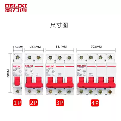 Delixi 2p63A air switch dz47s empty open 1p3p4p household switch circuit breaker three-phase 32a100a