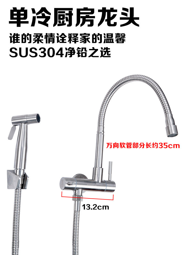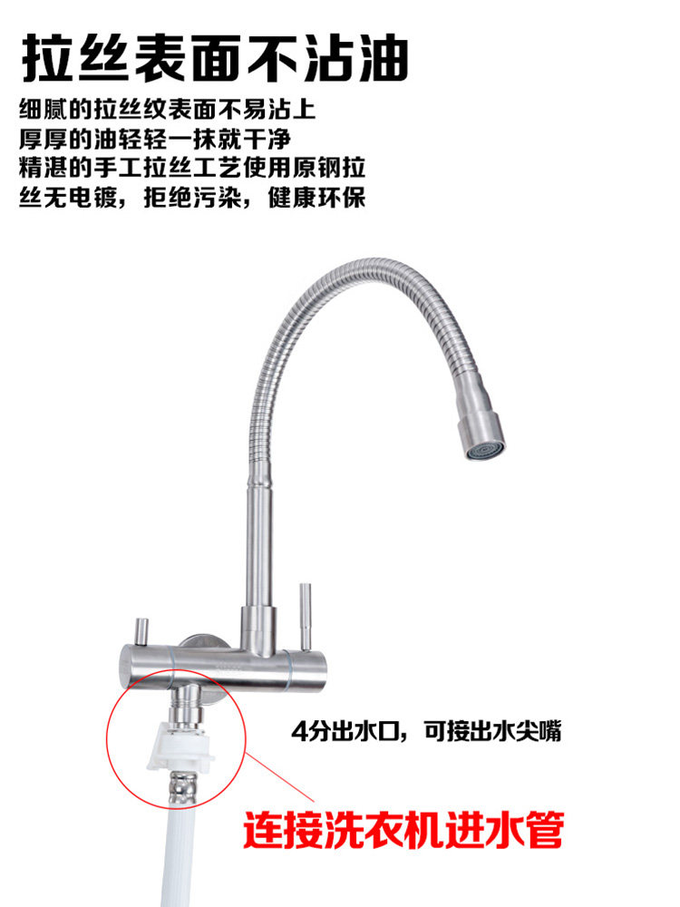 In-wall single cold kitchen double with one in two out 304 stainless steel balcony laundry pool 4 points washing machine faucet