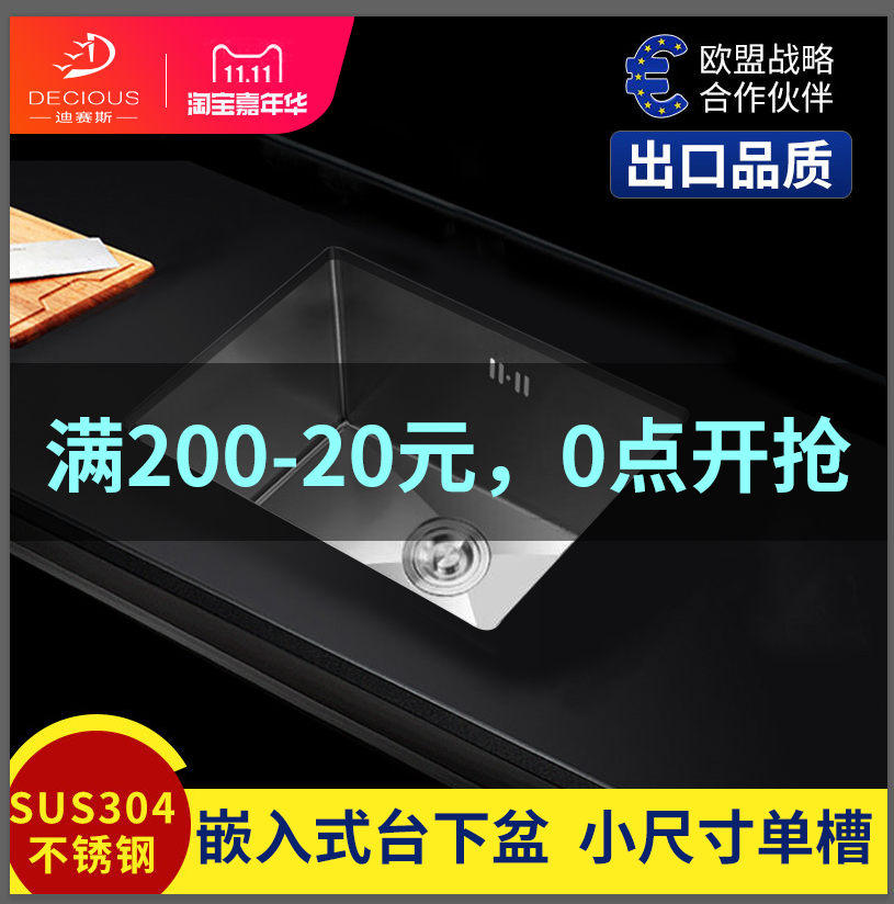 304 stainless steel manual sink Small single sink kitchen built-in under-table sink sink sink 30x35x40