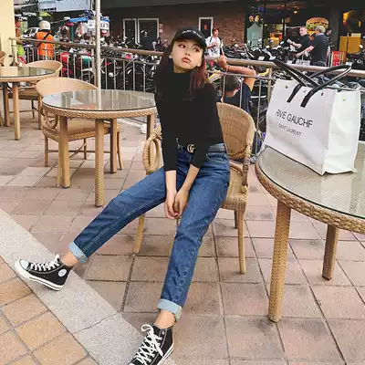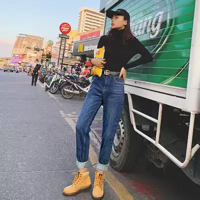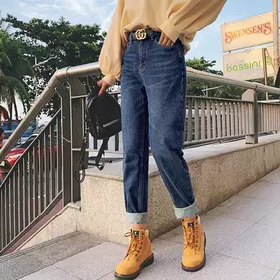 Straight jeans women's loose Harun dad Luo Radian spring 2021 new thin spring and autumn high-waisted trousers