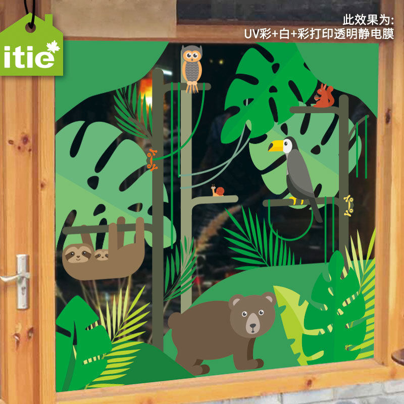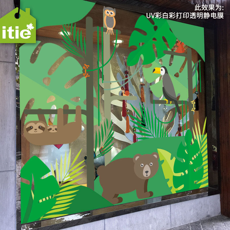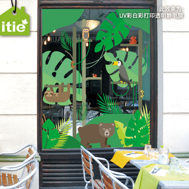 Custom Jungle Animal Cat Owl Parrot Bear Shop Shop Shop Glass Collision Avoidance UV Color White Color Film-Milling-Taobao