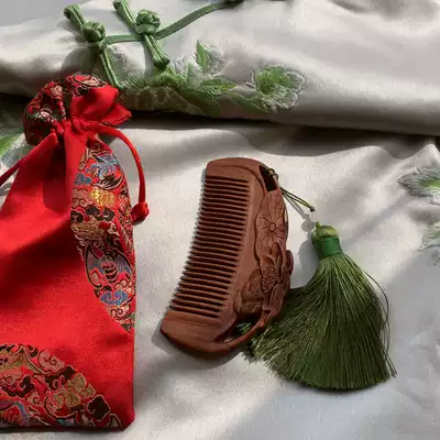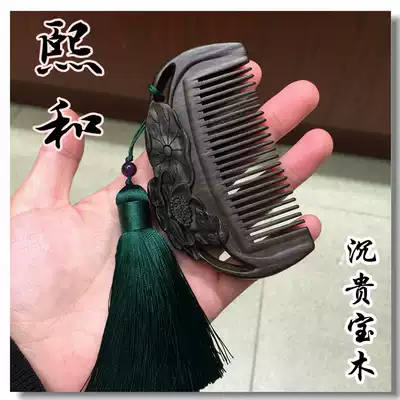 Lotus double-sided engraving Shen Guibao green sandalwood recommended mini bag portable natural log anti-static hair care wooden comb