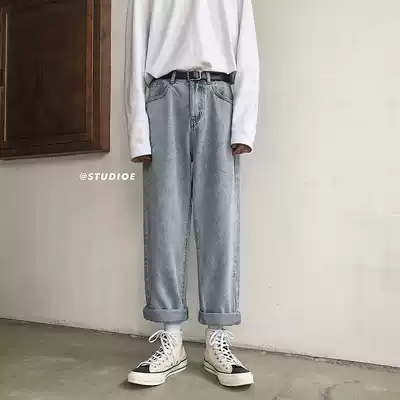 Jeans men's loose straight trendy brand drop sense wide leg pants Dad ins Korean version of the trend autumn and winter all-match students