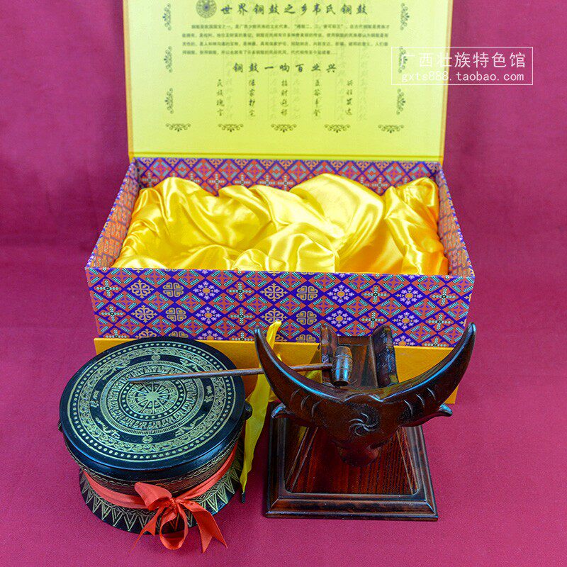 Guangxi Zhuang copper drum intangible cultural Heritage Hand-cast drum Ethnic ornaments Business gifts Craft gift ornaments