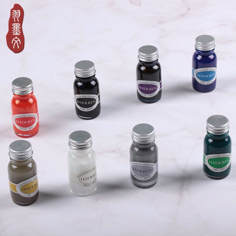 Color gold powder ink France J HERBIN Brief NONCARBON English Calligraphy Feather Glass Pen Fountain Pen