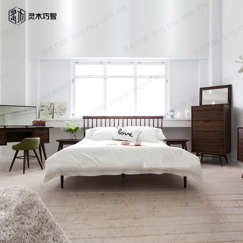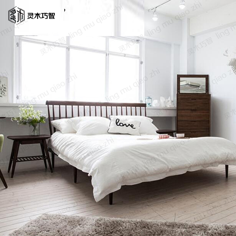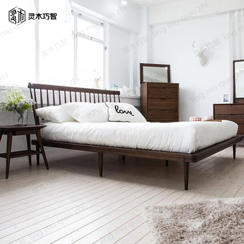 Nordic solid wood bed modern minimalist oak bed black walnut bedroom furniture custom-made 1 8 meters double bed marriage bed