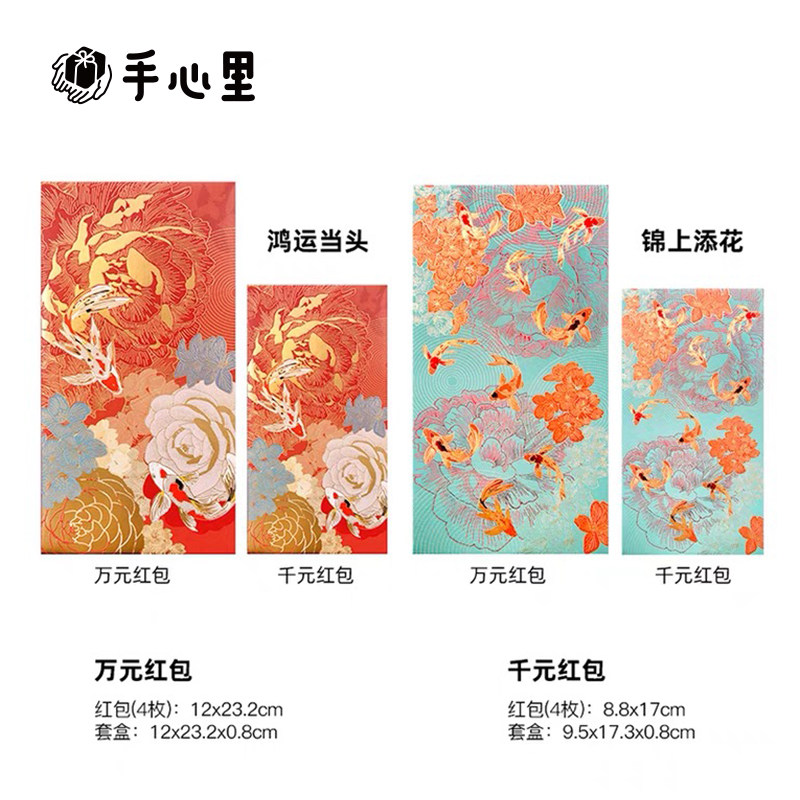 Good luck like brocade, red envelopes, good luck, good luck, red envelopes, Jinx, Jinx, red envelopes (4 pieces), "He" red envelopes (4 pieces) "red envelopes (4 pieces) songhe Fuxi-Auspicious Red
