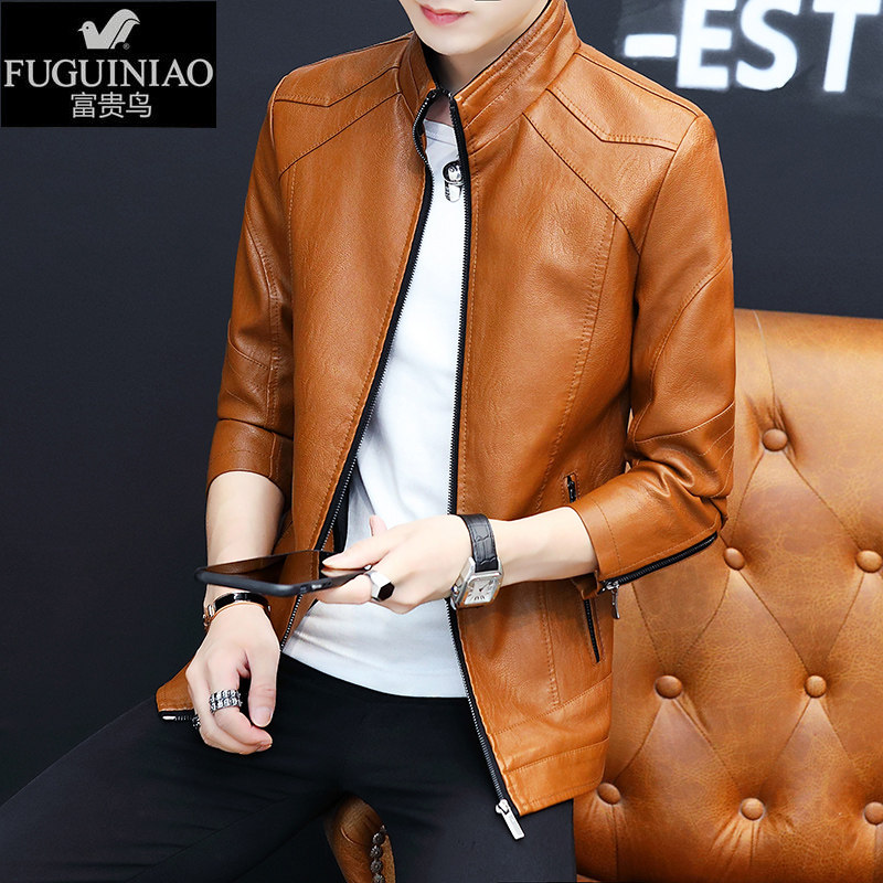 Rich Gui Bird Special Cabinet Genuine Leather Clothing Clothing Casual Spring Autumn Middle-aged Father Thin Autumn Jacket Locomotive Leather Jacket