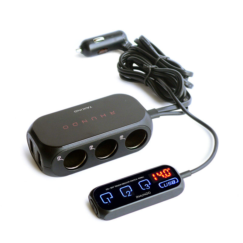 Adjustable time-lapse electrifying flameout power off with switch mobile phone car load charger 2USB one tug cigarette 3 cigarette lighter
