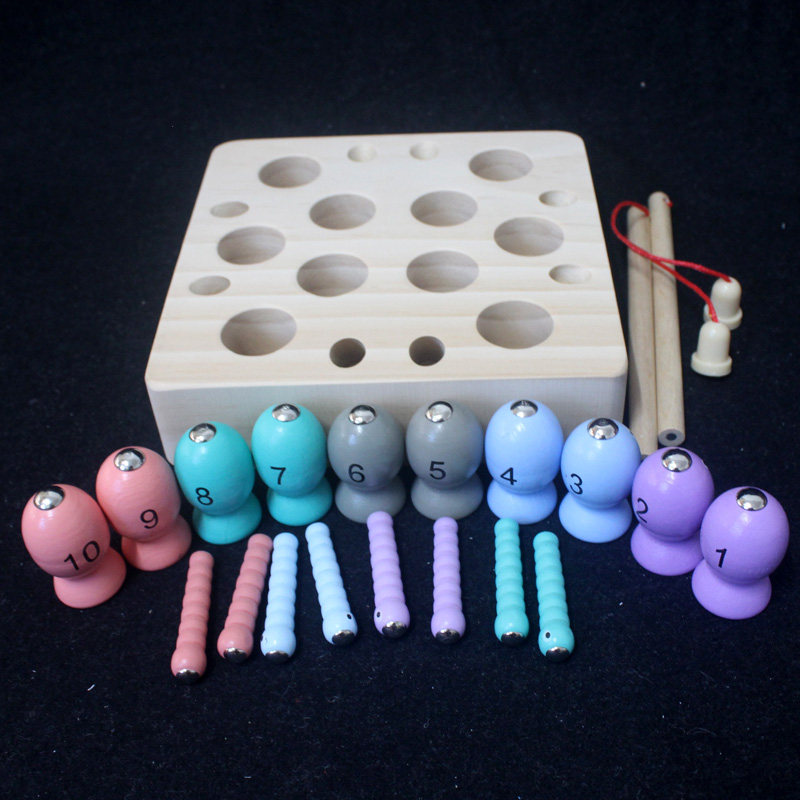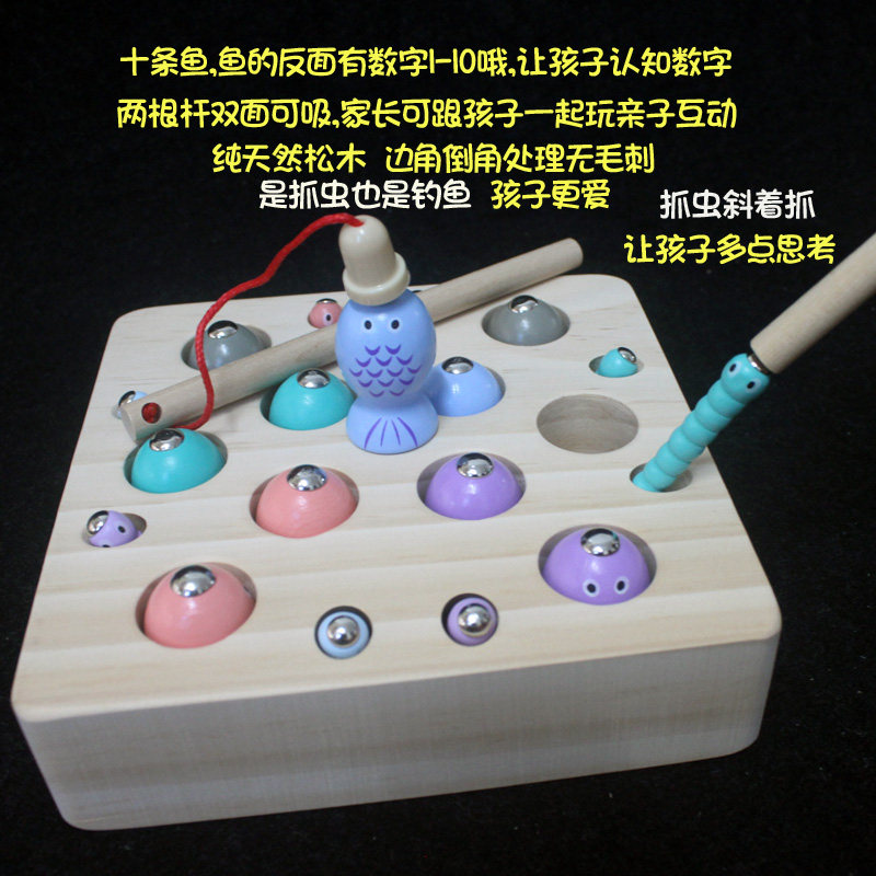 Montessori children's early education teaching aids wooden magnetic fishing catching insects baby toddler baby educational toys 0-1-