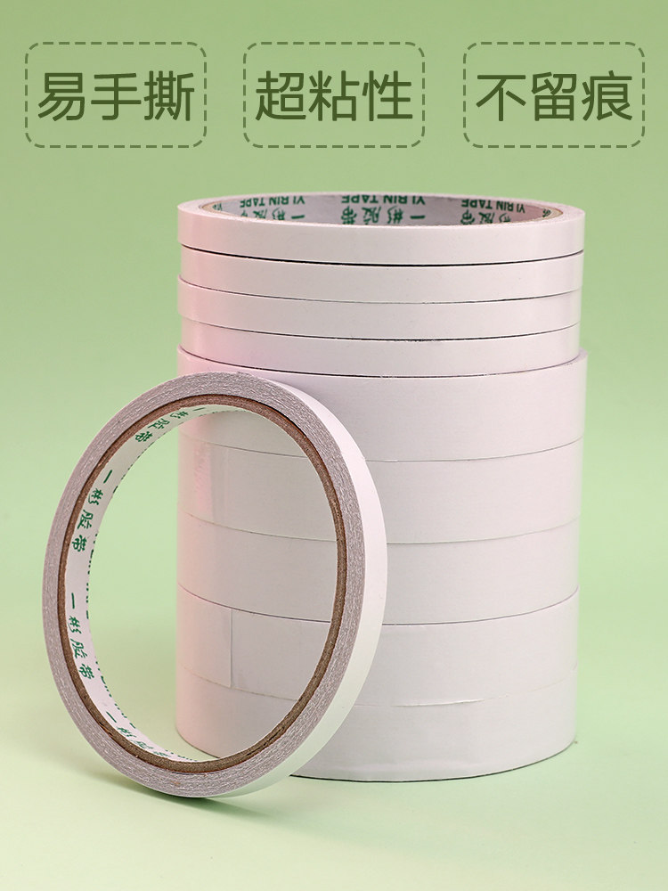 Powerful fixed wide double-sided adhesive tape with strong adhesive two sides adhesive paper adhesive tapes students use high viscosity without mark easy to tear office double-sided adhesive translucent hand stationery supplies Wholesale double-sided adhesive tapes with thin strips