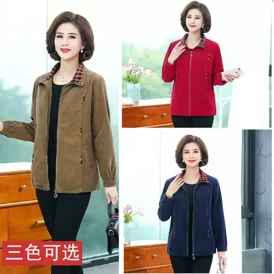Middle-aged mother short coat 50-year-old women 2021 New Spring cotton wick striped velvet old man jacket autumn foreign pie