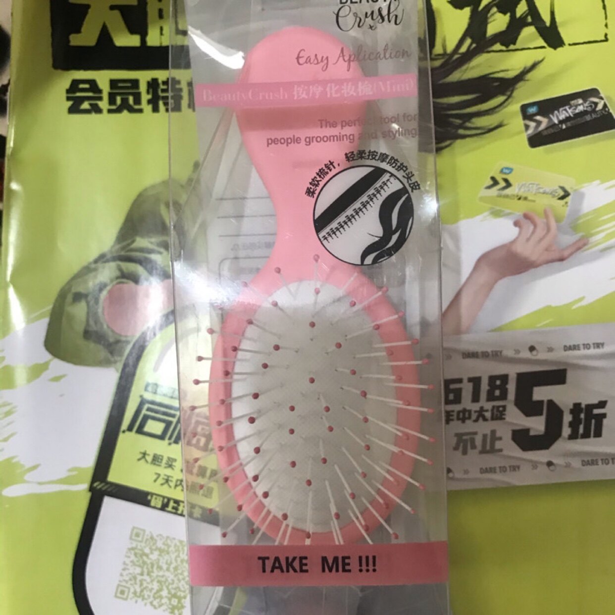 Mini cushion hair comb mini round hair comb (black) Massage dresser (pink) very little mini round hair comb (pink)