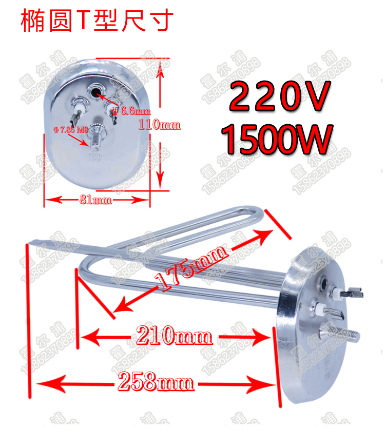 Water Heater Electric Heating Tubes Universal Hot Water Rod 220V1500 Oval Heating Pipe Farangay Electric Heating Tube Substitute-Taobao