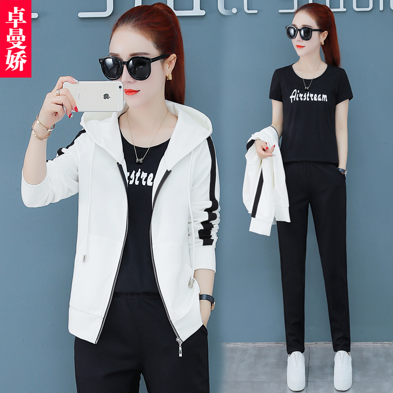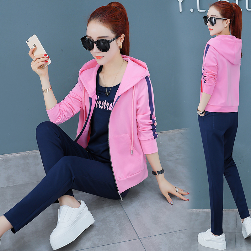 Sportswear suit women's spring autumn 2020 new thick cotton T three sets of damp Korean version loose large size with cap casual suit