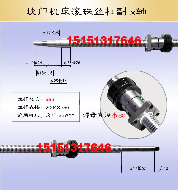 Yuhuan Kan door machine bed screw CNC0632 320 300 6136 CNC lathe bed trust XZ axis ball screw