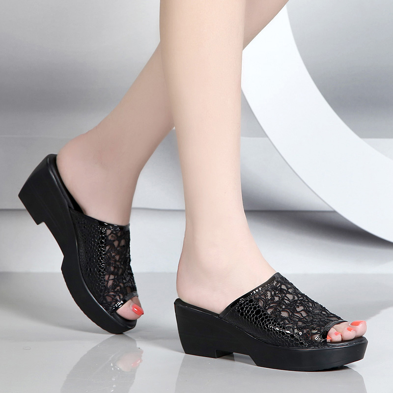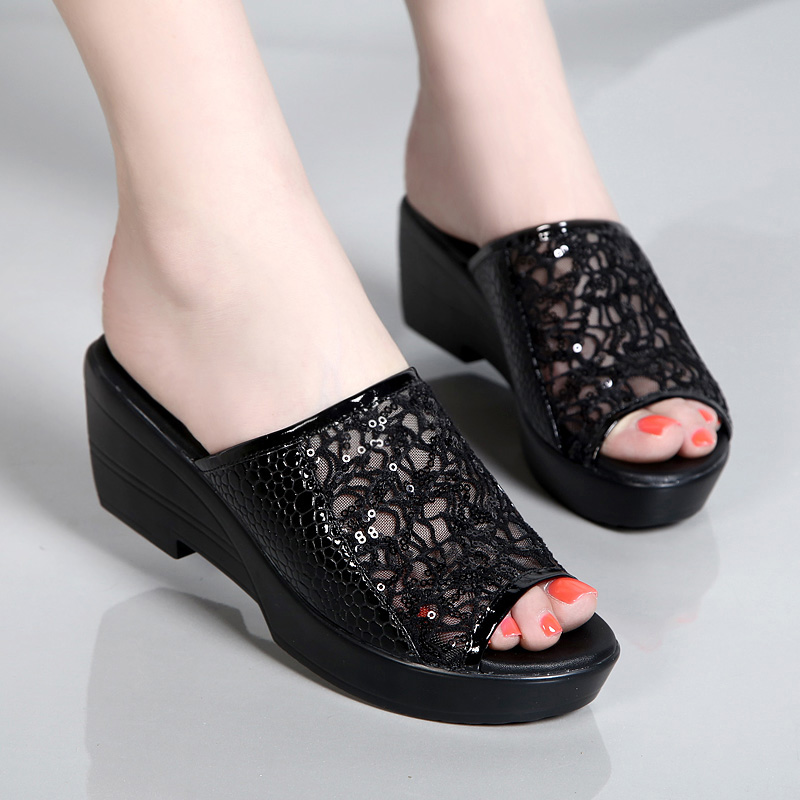 Gintbury Coarse-heeled Sandals Shoes Women's Thick-soled Anti-slip Wearing Pad Mesh Wedge Sandals Women's Large Size Shoes