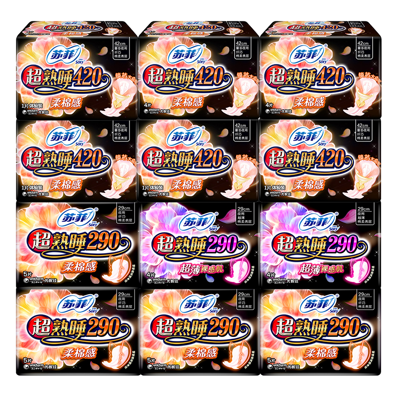 Sophie sanitary napkin aunt female cotton soft 290 night use 420mm ultra-long combination full box official flagship store