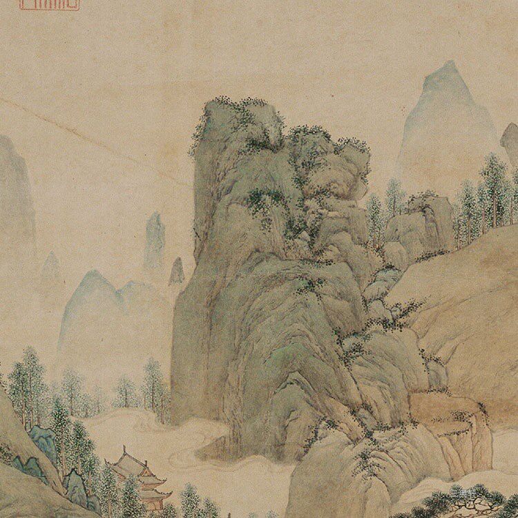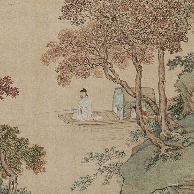 Ming Qiuying Fengxi fishing map axis green landscape HD TIF format picture electronic version inkjet material original scan