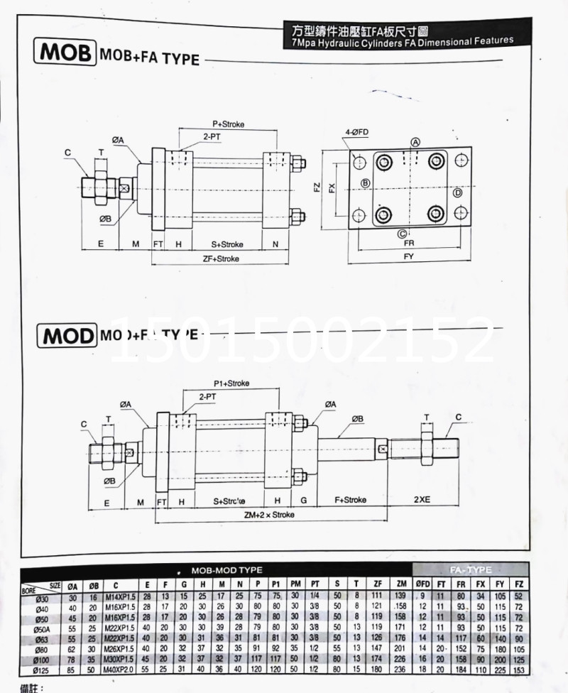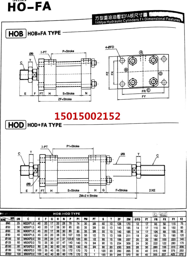 Cylinder Light duty Heavy duty die Hydraulic cylinder Front flanged HOB MOB30 40 50 63 80 100 FA