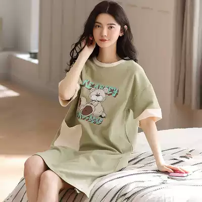 Nightdress women Summer cotton short sleeve thin 2021 New cute students can wear pregnant pajamas with chest pad
