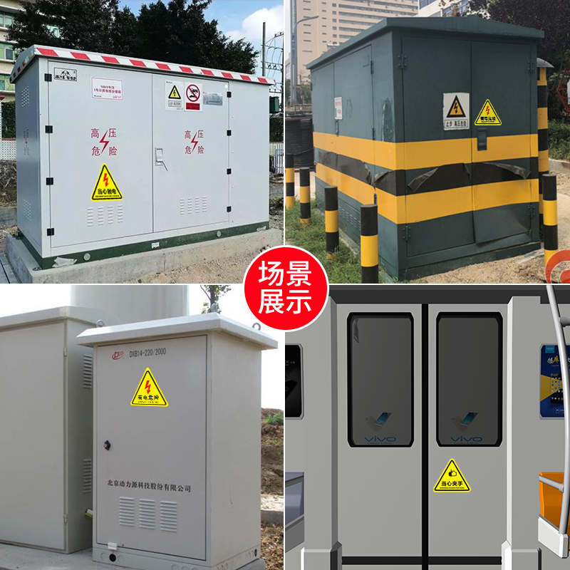 There are electric danger warning stickers Beware of electric shocks Beware of mechanical injuries Pay attention to safety High temperature fire signs Warning signs indicate high voltage electrical distribution box sticker signs Warning signs
