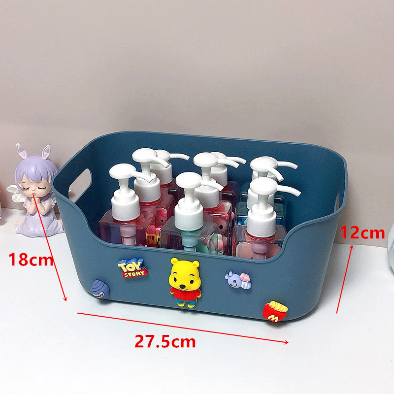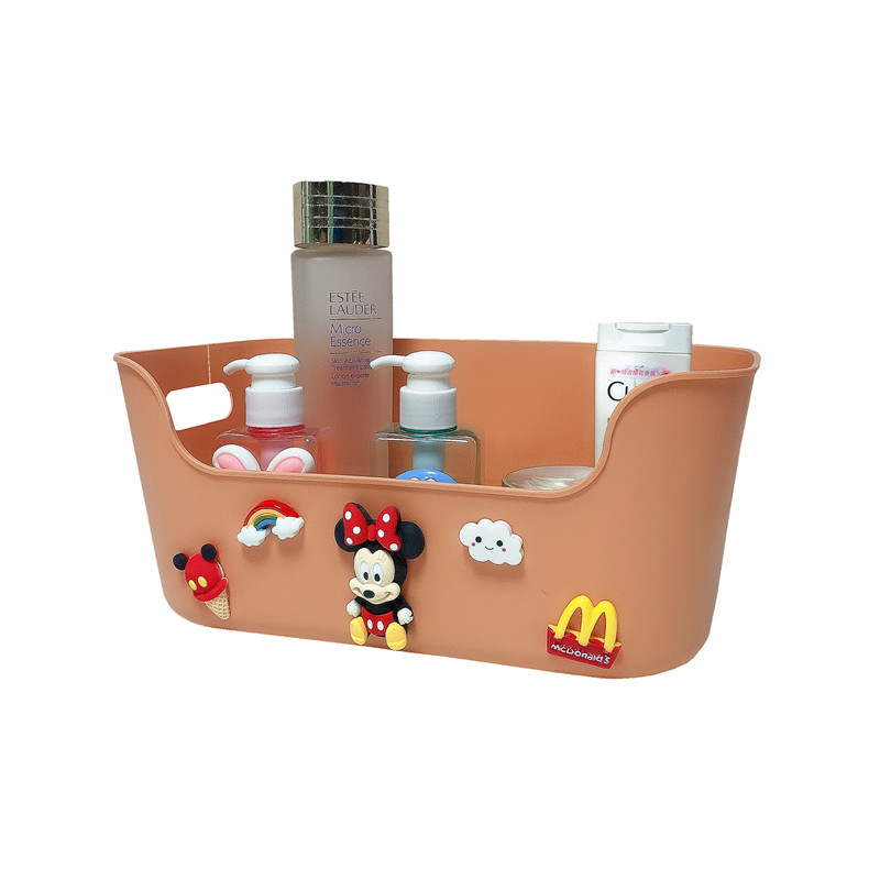 Cartoon storage basket desktop storage box cute rattan plastic sundries finishing box desk cosmetics storage box