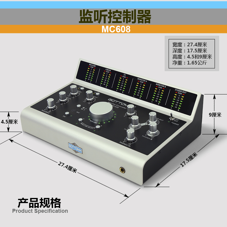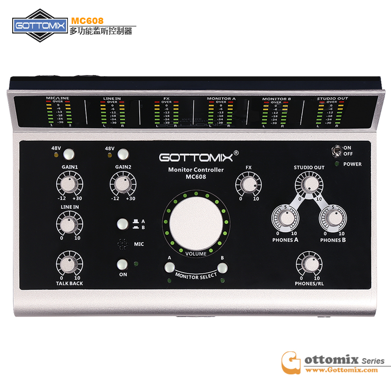 Gottomix MC608 Studio Monitor controller with intercom support for listening to wet recording and dry bigknob