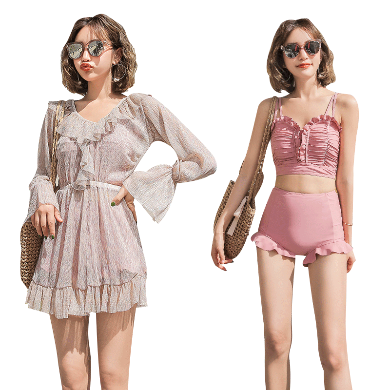 Two-style swimsuit women 2020 new net red and fairy Fan small breasts to woo three sets of conservative and slim cover