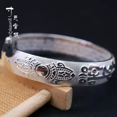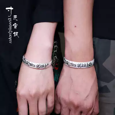 Yunnan snowflake silver sterling silver six-character truth S999 bracelet engraved heart sutra couple men's and women's foot silver bracelet