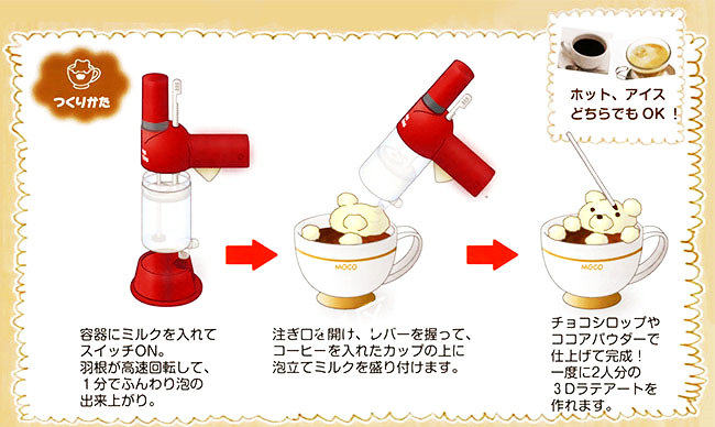 Japan T-arts 3D Coffee Rachers with iron stereo Milk Bubble Machine Tickler Cream Foam