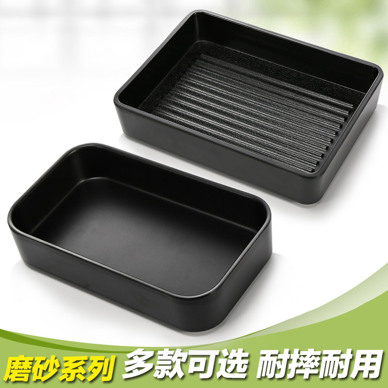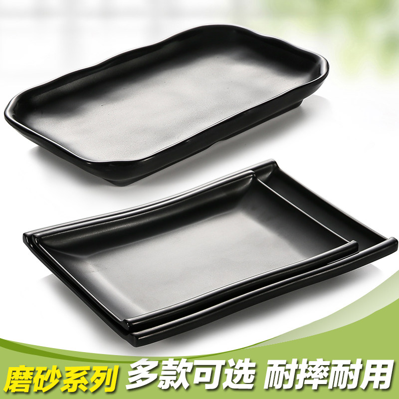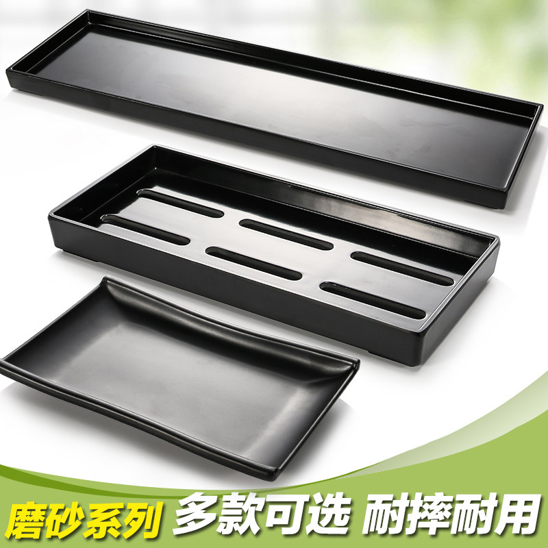 A5 black frosted creative long strip barbecue plate Japanese drop resistant sushi plate melamine imitation porcelain bamboo dragon prawn plate