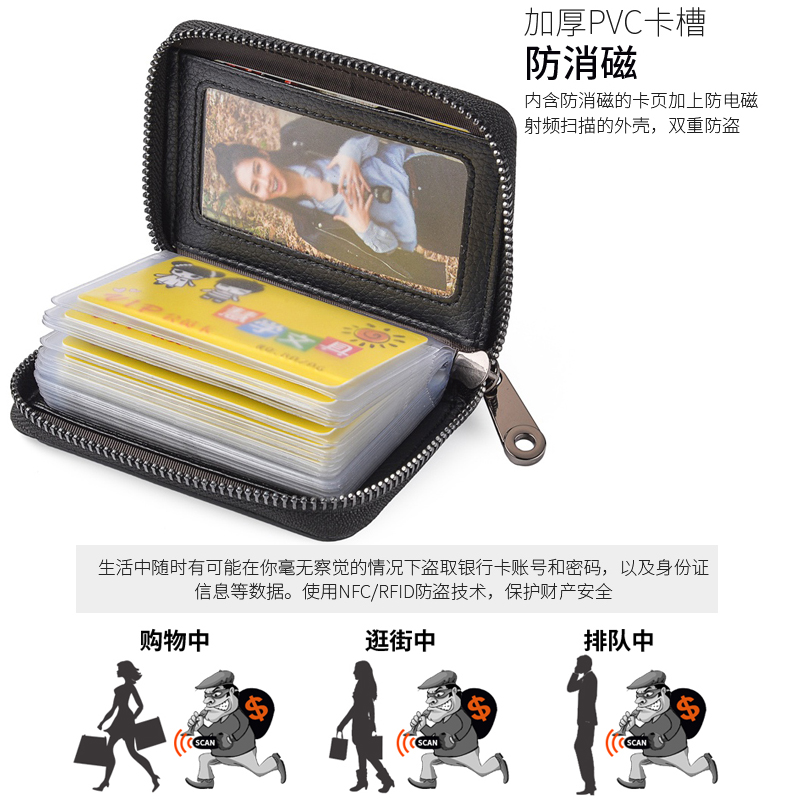 Anti-theft brush Men's card bag Leather credit card cover Anti-demagnetization card holder Female multi-card small card bag ID card bag