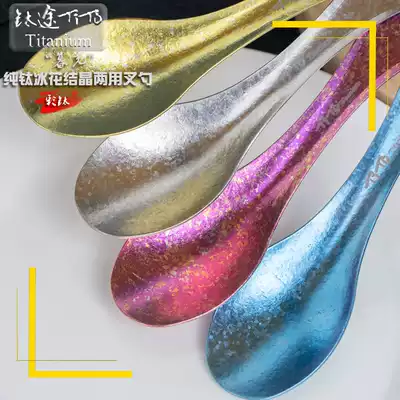Dual-purpose fork spoon (matte titanium) containing cloth bag dual-purpose fork spoon (Ice Flower titanium) containing cloth bag dual-purpose fork spoon (ice basket color) containing cloth bag dual-purpose fork spoon (Ice Flower Gold)