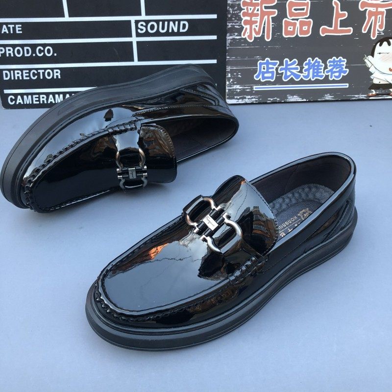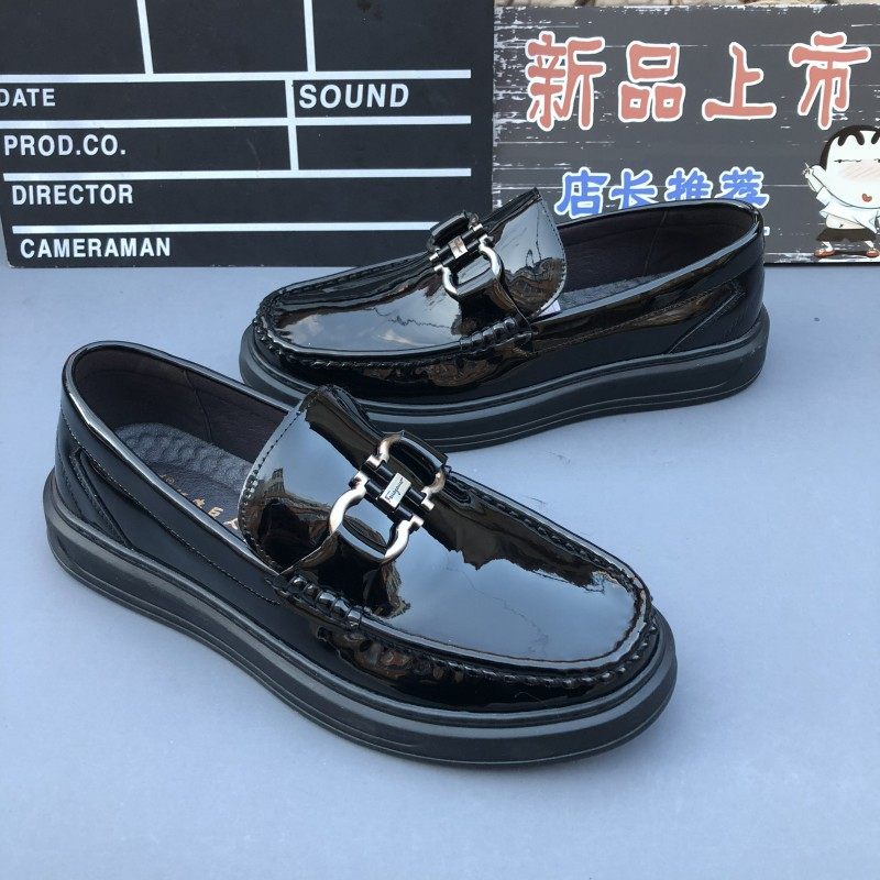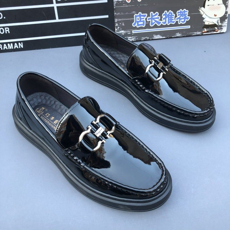 New patent leather beanie men's shoes Korean version all-match bright surface slip-on casual shoes thick bottom net red with the same style leather shoes spring and autumn