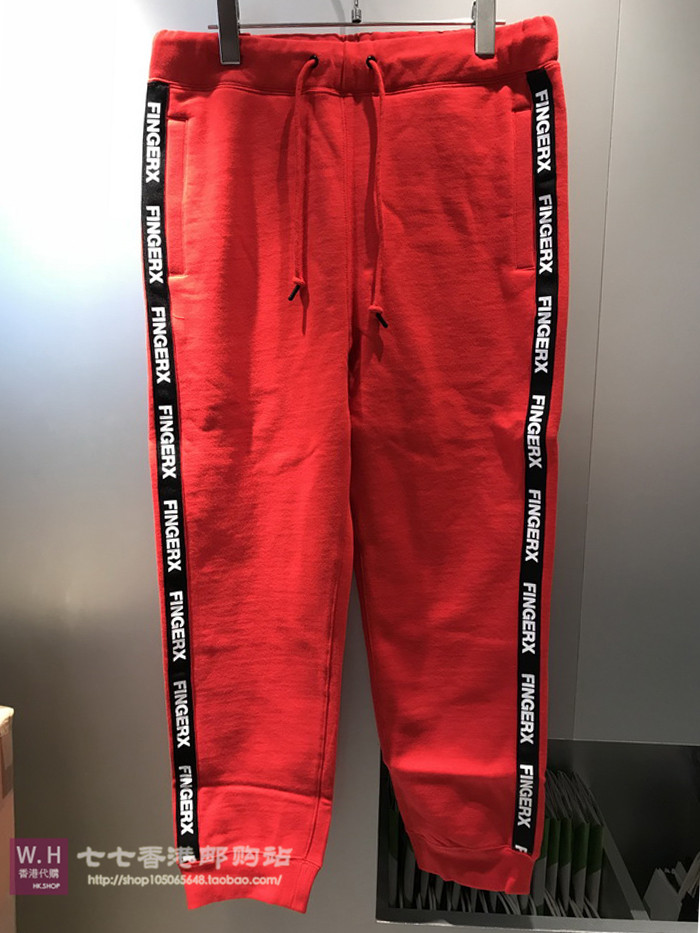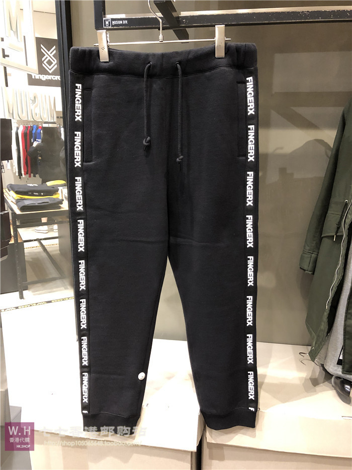 Hong Kong tide shop Fingercroxx FGXX autumn and winter men's letter edge stitching plus velvet casual pants 60370
