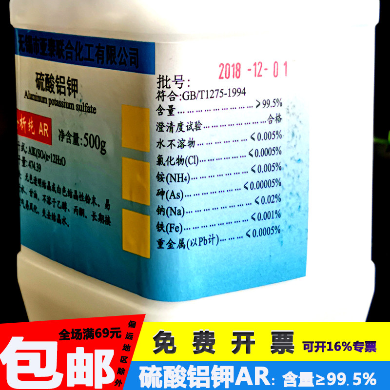 Shanghai National Drug Aluminum Sulfate Analysis of Pure AR 500g Xiqiu Hydraulic A30718; Potassium potassium acid