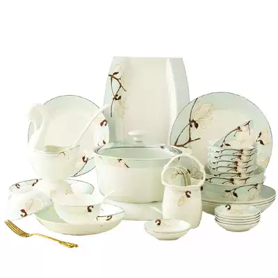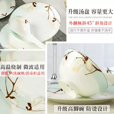 Xie Ting Yulan Jingdezhen Chinese dish set household plate simple soup bowl bone porcelain tableware Rice Bowl