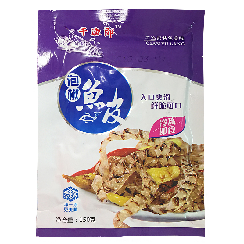 Qianyulang pickled pepper fish skin instant crispy fish skin seafood hotel cold dish spicy fish skin shredded snacks snacks 150g