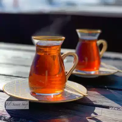 Turkish handmade tea cup large capacity 160ml one cup one dish to give spoon Ottoman traditional totem black tea cup
