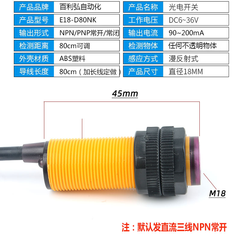 Obstacle avoidance photoelectric sensor module E18-D80NK diffuse infrared sensing photoelectric switch three-wire NPN normally open