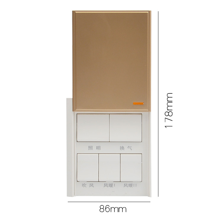 Yuba switch 86 type five-open slide cover universal with cover bathroom switch dressing room waterproof 16A panel champagne gold