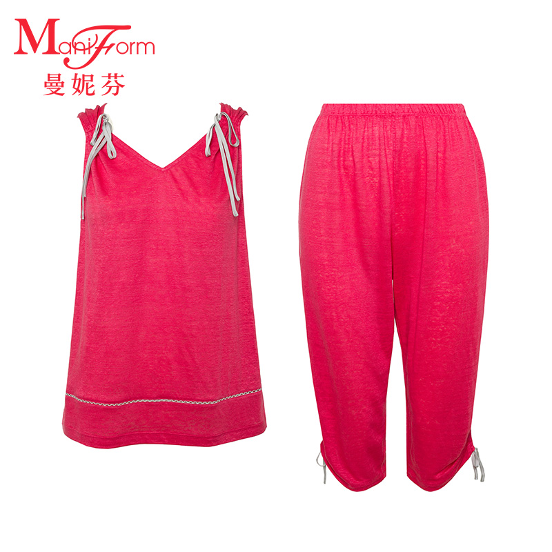 (Song Qian Tongan) Manny Finn Seven Pants Suit Linen Home Clothes Woman Casual Loose Sleepwear 20310543