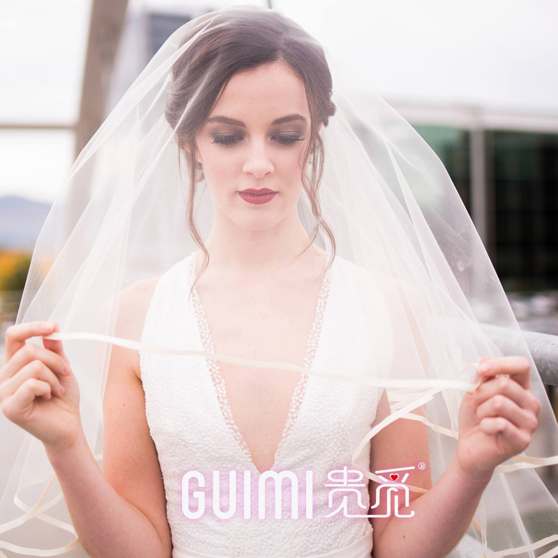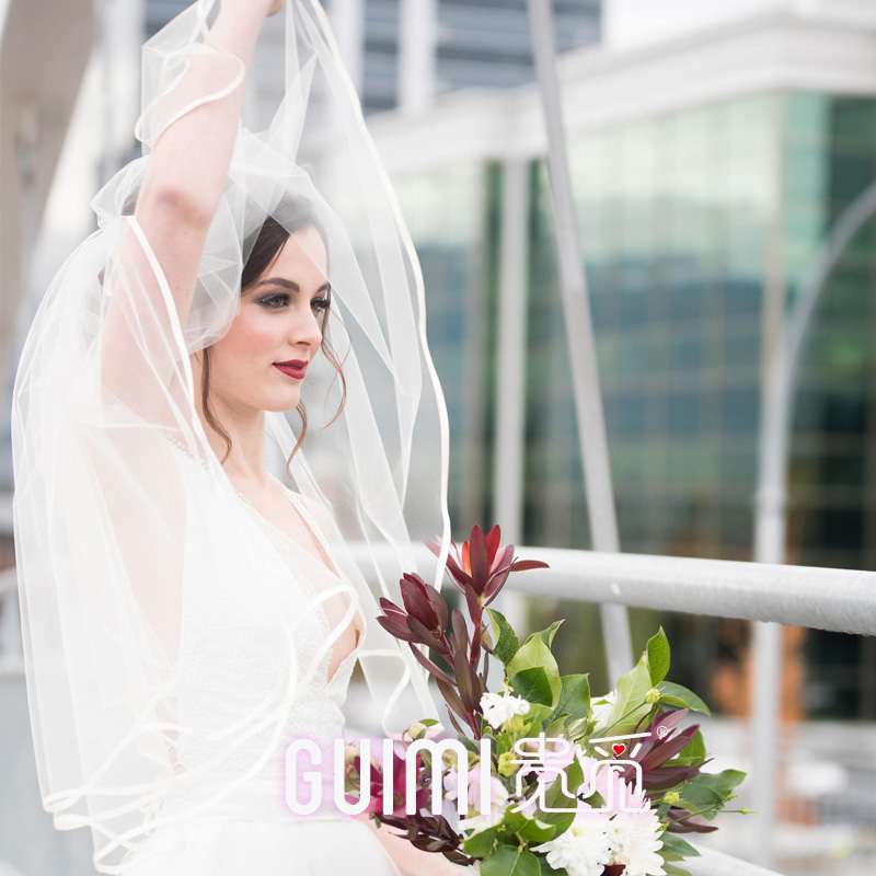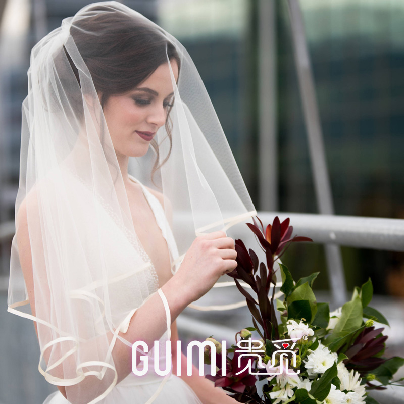 Wedding dress Bridal veil satin edge short section Sen Korean wedding photo super Fairy new simple edging head yarn headdress