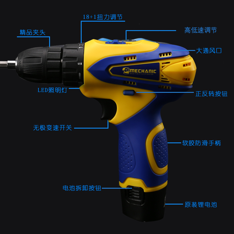 Repair guy Two-speed rechargeable electric drill Multi-function small electric drill DC 12V household lithium drill tool