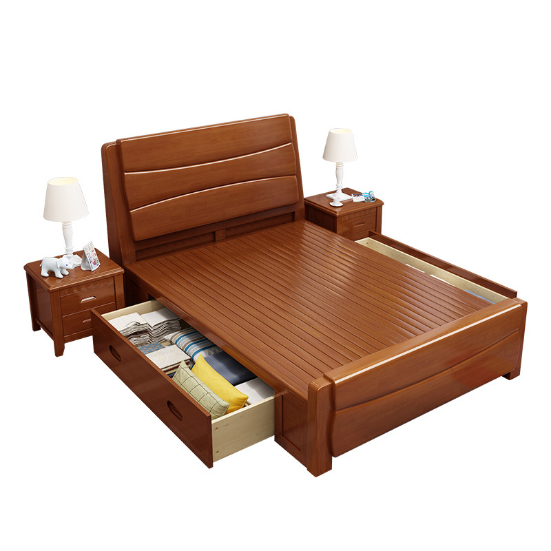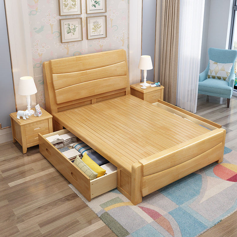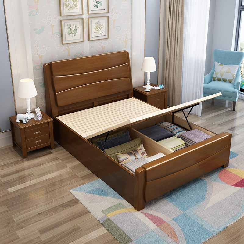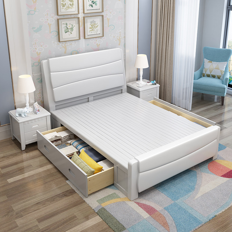 Solid wood bed 1 35m 1 2m Small apartment single bed 1m high box storage bed 1 8 1 5m Economy small bed
