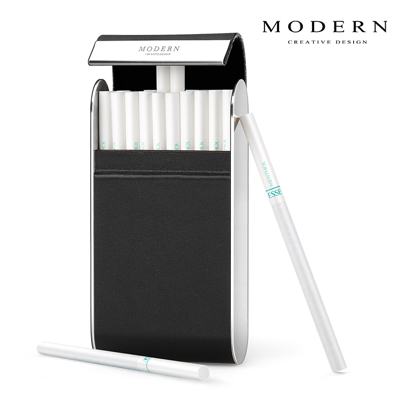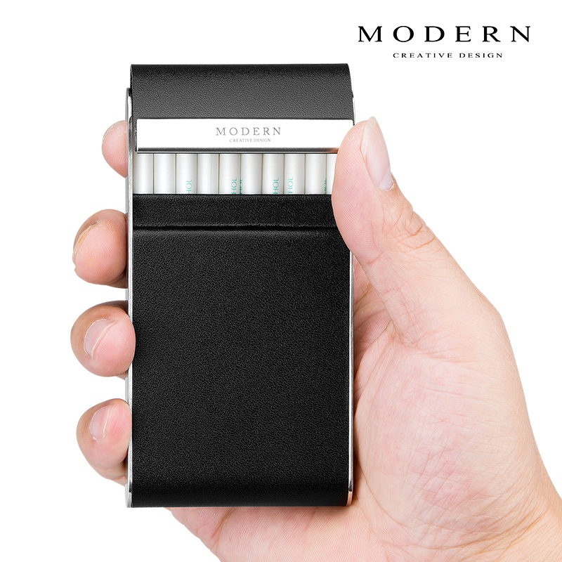 High-end men and women 20 Loaded Fine Tobacco Boxes Portable Stainless Steel Smoke Clips Long Fine Tobacco Box Bull Leather Smoking Boxes Carry-on Cigarettes