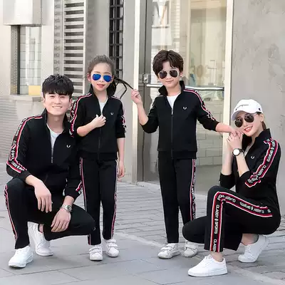 Parent-child red sports suit two-piece set Campus parent-child activities group sportswear men and women sportswear couples