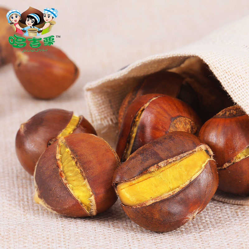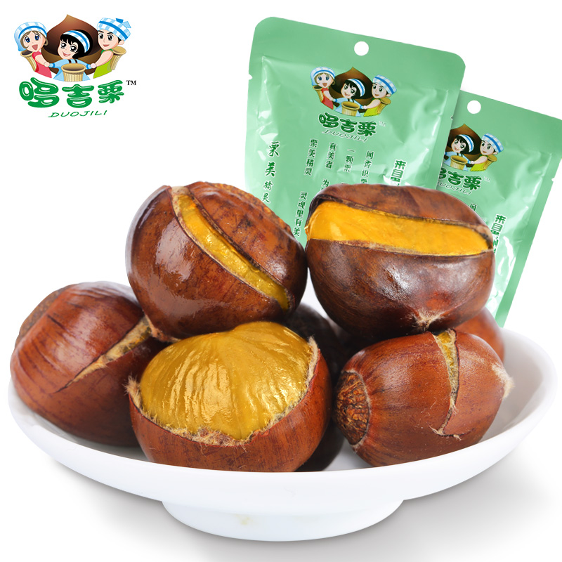 Doji chestnut _ Open smile chestnut elf 100g*4 bags with shell instant chestnut Sweet chestnut fresh sugar fried chestnut kernels