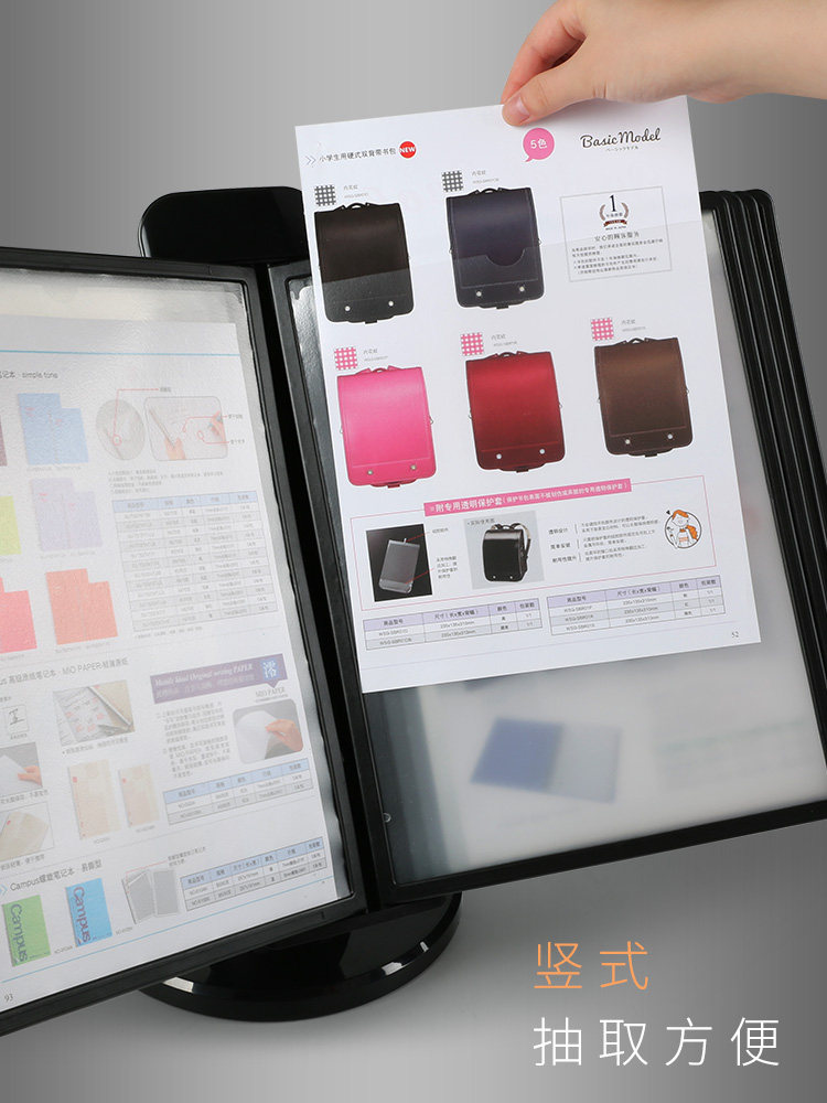 Installed fast A4 page turning file rack desktop display board 360 ° horizontal rotating page turning frame desktop menu file multi-page information function introduction dish newspaper publicity display rack photo stand